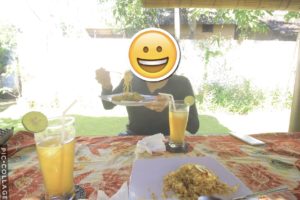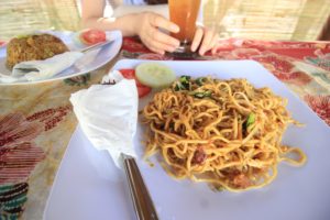 そして食事付きのコースだったので中庭でご飯をいただきました。ナシゴレンとミーゴレン。間違いないね。