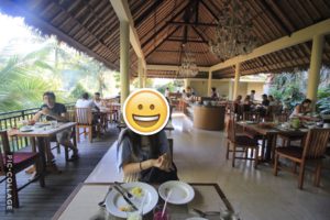 ここは海に沈む夕日を見ながらご飯が食べられるという素敵スポットらしい。なんとお洒落な。宿泊者じゃない人でも利用できるらしいけど、宿泊者は優先的に入れるらしい。
