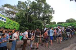 開園前から既に入り口には行列が!みんな早い!そして、開演と同時に受付をして無事に19:30からの日本語トラムチケットをゲット!