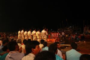 プジャーとはヒンドゥー教で行われている礼拝のことで、ここのガートでは毎日日没から行われているそうです。特にこのダーシャシュワメートガートは沐浴などで人が多く集まるガートだそうです。