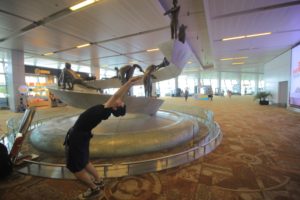 空港内にあるヨガの銅像。